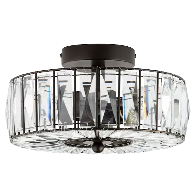 Bring luxe lighting to your interior decor with the River of Goods Oil Rubbed Bronze and Crystal 11.25-inch Ceiling Light. This circular metal and glass ceiling light makes a great pick for hanging above your dining room table, in the center of your living room, or in your entryway for a stylish look and convenient overhead lighting. The semi-flush mount metal fixture mounts into your ceiling for a seamless look, and it features an oil-rubbed bronze finish for a look that complements a variety of color palettes and decor styles. Crystal facets all the way around the design as well as on the bottom create a beautiful effect for the light from the two bulbs inside.