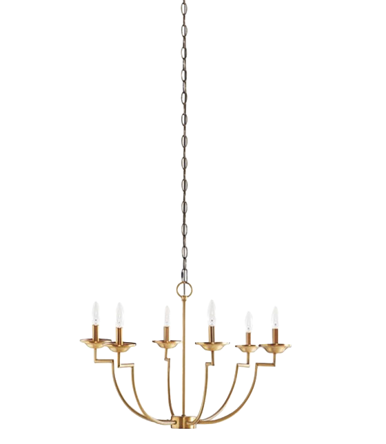 Inspired by traditional candelabra designs, the Hampton Hill Savor 6-Light Traditional Candelabra Styled Chandelier brings an elegant addition to your dining decor. This refined chandelier features 6 curved arms in a gold metal finish to create a luxurious transitional look. The gold ceiling base and chain add distinguishing touches to the design, while also elevating your dining room or kitchen space. Uses 6, E12, CFL 13W or LED 9W Type B light bulbs (not included)